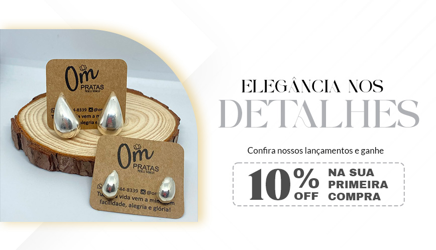 A OM Pratas é um e-commerce especializado em joias em Prata 925, com peças cuidadosamente selecionadas para quem valoriza elegância, autenticidade e qualidade. Trabalhamos com anéis, brincos, colares, pulseiras e outros acessórios que combinam com todos os estilos — do clássico ao moderno — sempre com o brilho e a resistência que só a prata de verdade oferece.